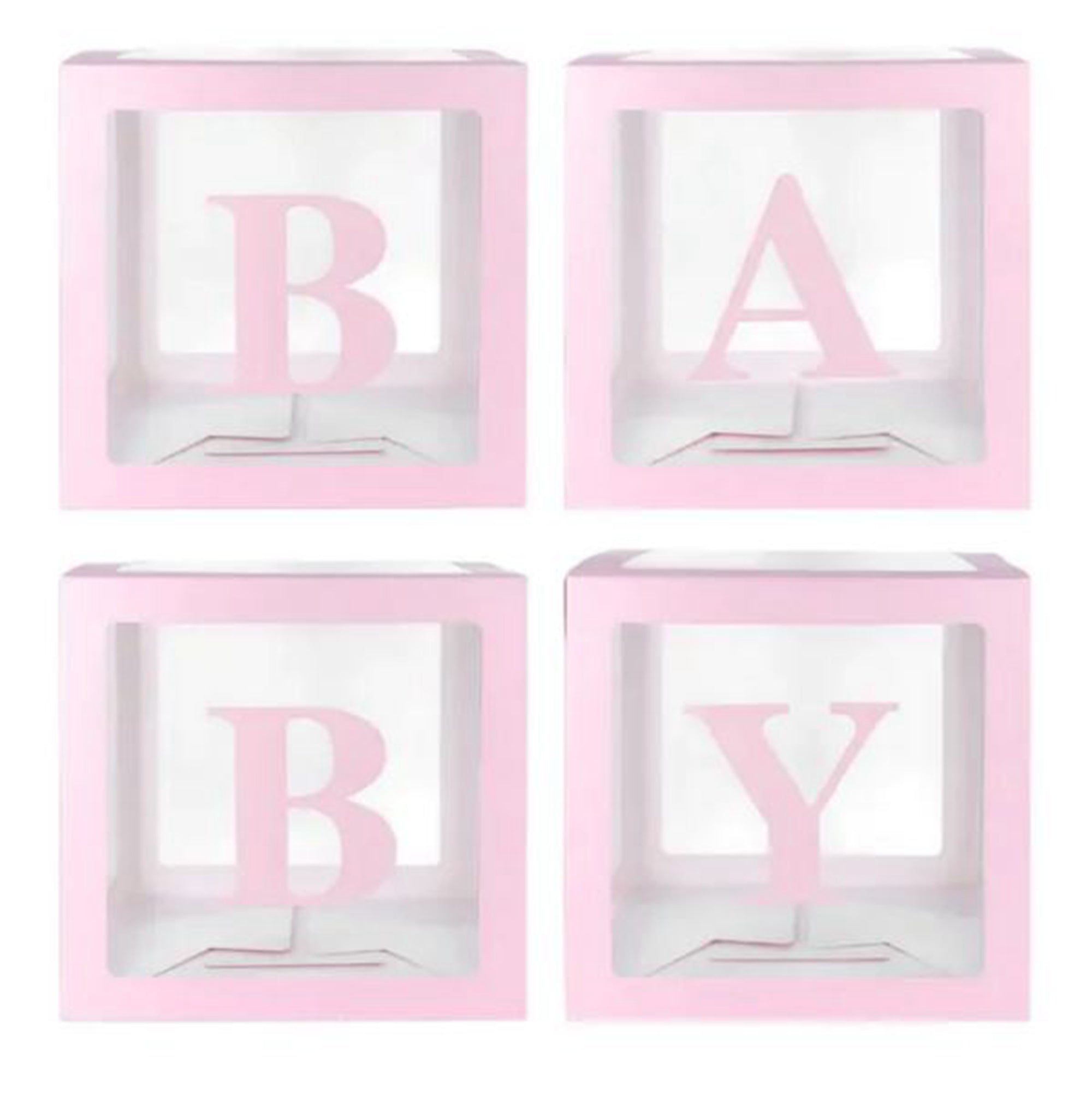 Baby Shower Box Set of 4 Pink Baby Block Boxes with Baby Letters Party Decoration - Transparent Ballon Boxes Backdrop - Baby Shower & Birthday Party