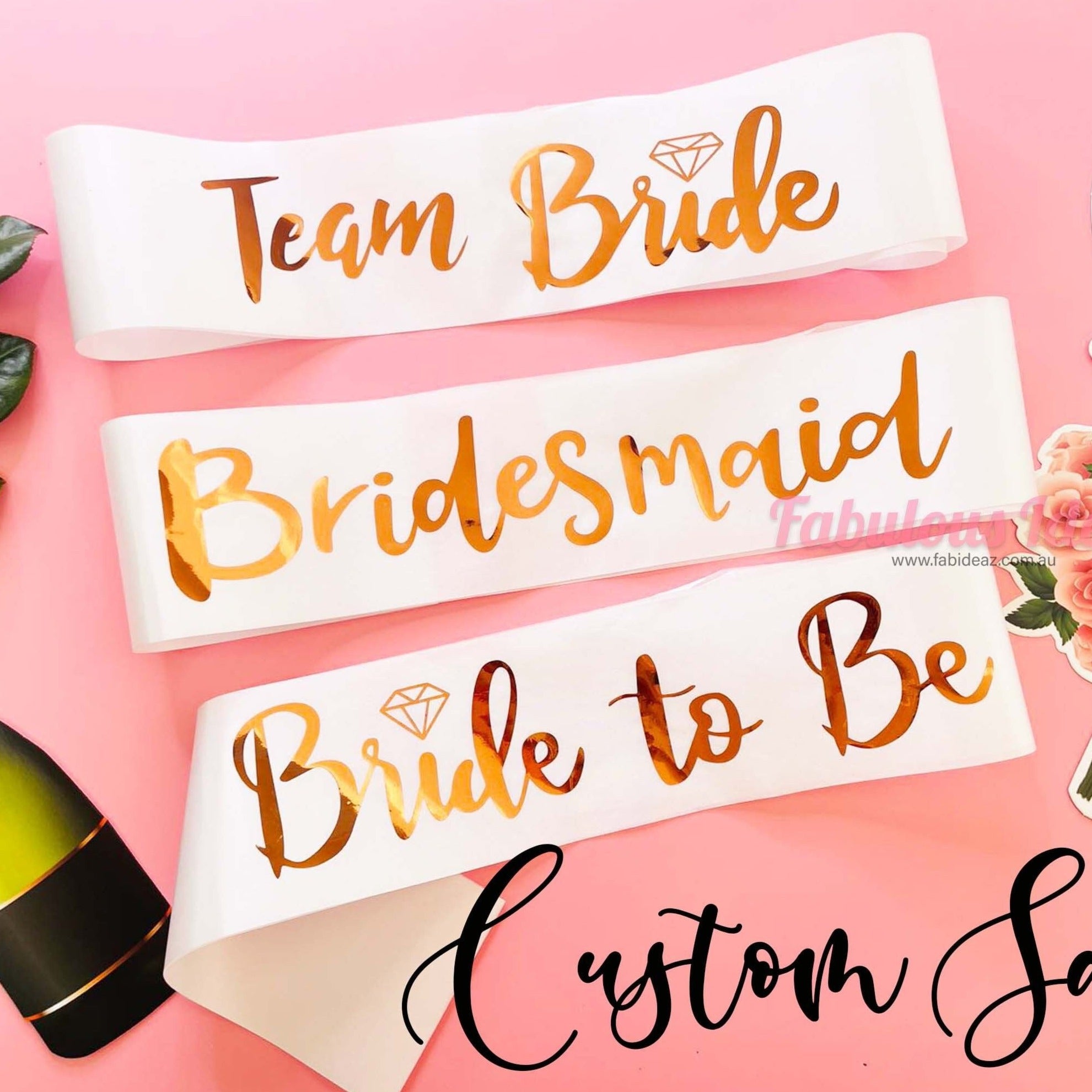 Personalised White Rose Gold Hens Sash - Hen Sash - Bride To Be Sash - Bridal Shower - Engagement- Hen Party- Bachelorette Bride Team Bride